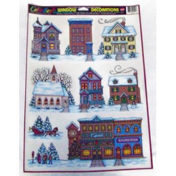 Christmas Village Window Cling Art Sea Christmas Window Cling