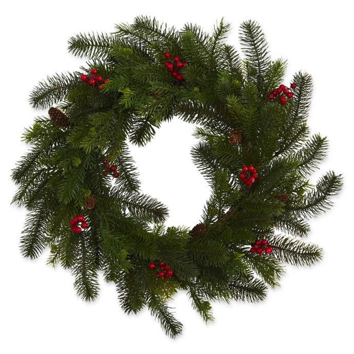 Nearly Natural 5 Inch Pine And Berry Wreath In Green Bed Bath Beyond