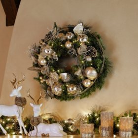 Member S Mark 32 Pre Lit Decorated Wreath With Metallic Tones Sam S Club