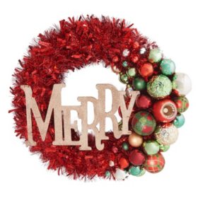 Member S Mark 24 Shatterproof Ornament Tinsel Red Wreath Sam S Club