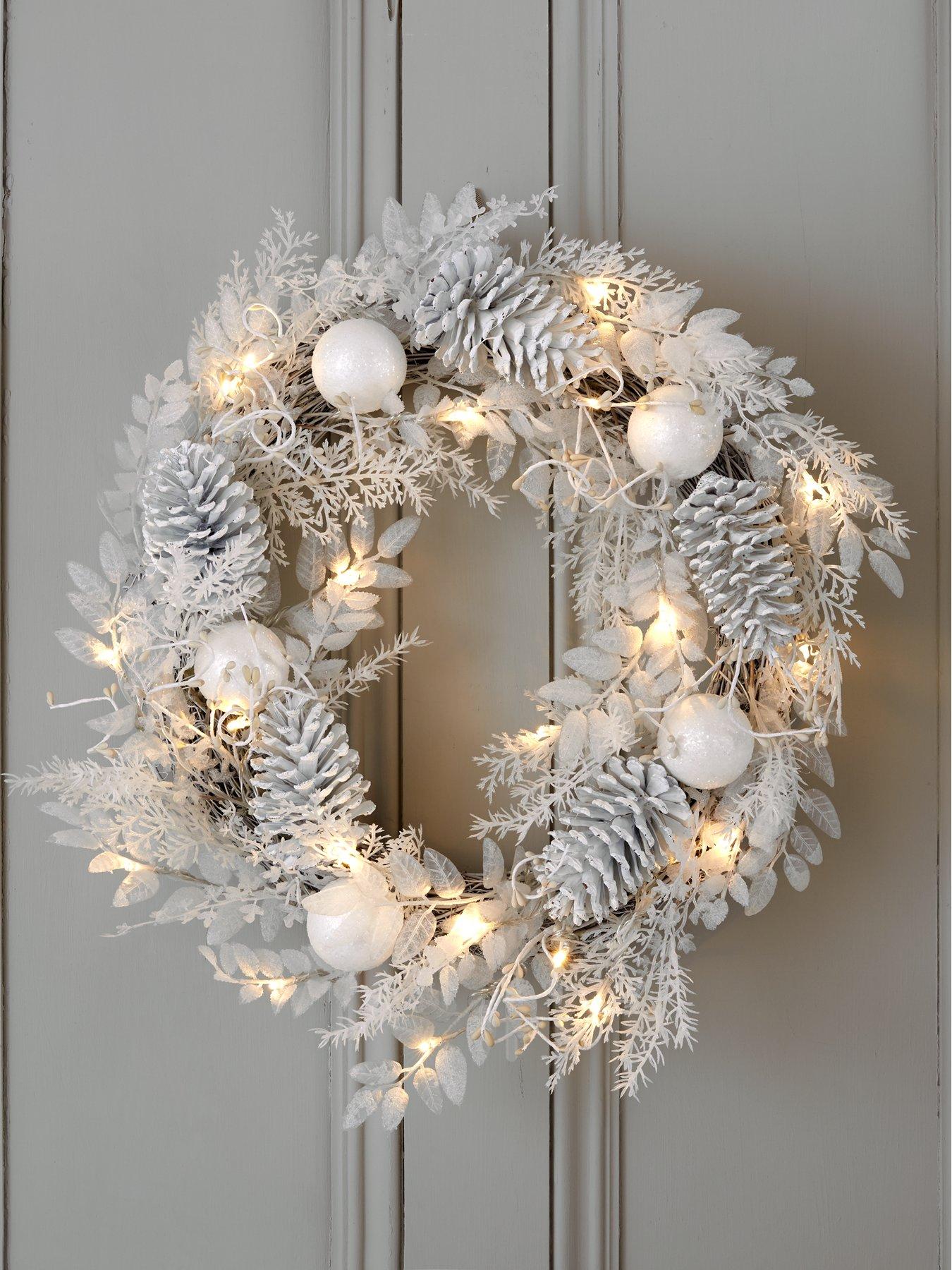 Pre Lit Winter White Christmas Wreath Very Co Uk