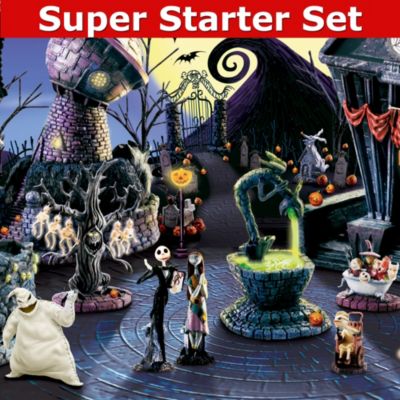 Nightmare before christmas village set. Only 6 left in stock order soon. Join the most famous citizen of halloween town the pumpkin king jack skellington and the rest of its weird and wonderful denizens in tim burton s the nightmare before christmas black light village collection the first ever village with black light effect from the bradford exchange hawthorne village division. 4 8 out of 5 stars 16.