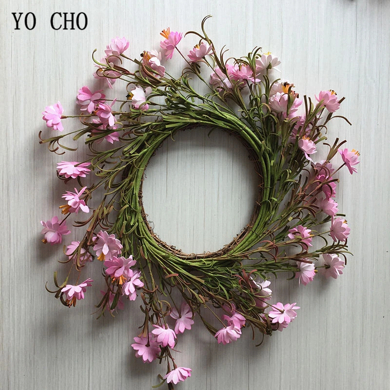 Yo Cho Christmas Wreath Daisy Wreath Decoration Garland Flower Wall Garden Decoration Hanging Wall Round Silk Flower Wreath Wreaths Garlands Aliexpress